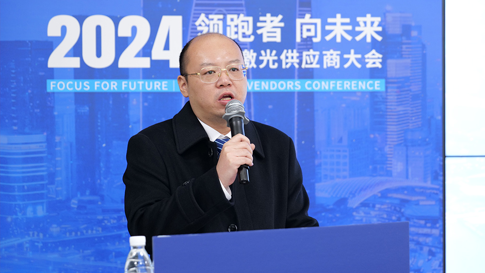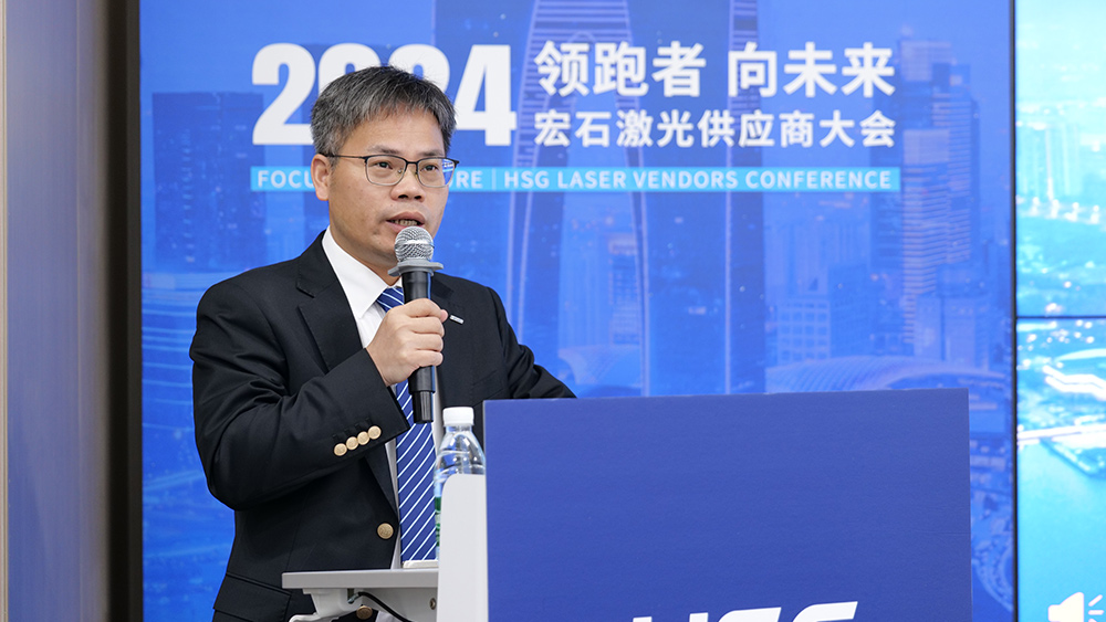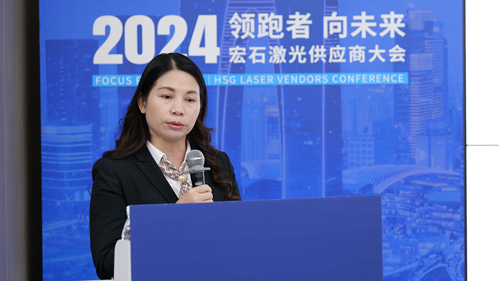 隨后,宏石激光董事、供應(yīng)鏈中心負(fù)責(zé)人劉洋代表發(fā)言,指出宏石激光2024年在產(chǎn)能提升、交期優(yōu)化、生產(chǎn)基地定位明確及精益生產(chǎn)推進等方面取得顯著成效,產(chǎn)品線進一步豐富,市場滲透力持續(xù)增強。展望2025年,宏石激光將堅持以雙贏為核心理念,圍繞產(chǎn)能增長、效率提升、資源優(yōu)化及交期縮短等重點,全面構(gòu)建具有國際領(lǐng)先水平和國內(nèi)核心競爭力的供應(yīng)鏈體系,與合作伙伴攜手共創(chuàng)發(fā)展新局面。
