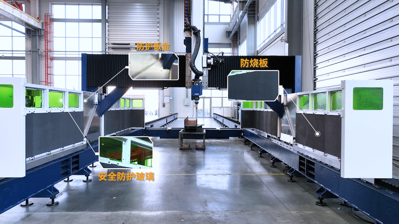 PR1500B激光切割機(jī)配備三重安全防護(hù),橫梁兩側(cè)增加防護(hù)鈑金并覆蓋一層防燒板,防止切割熔渣飛濺,同時(shí)設(shè)備上設(shè)有安全防護(hù)玻璃,方便實(shí)時(shí)觀察切割動(dòng)作,切實(shí)做到了安全穩(wěn)定生產(chǎn)。