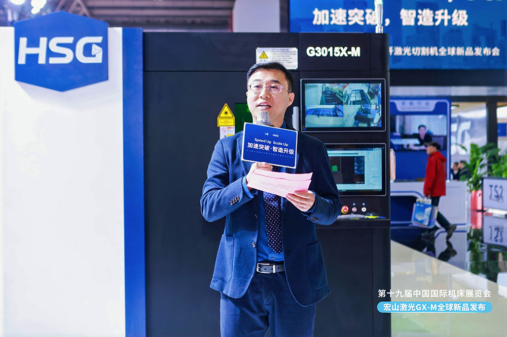 中國機床工具工業(yè)協(xié)會執(zhí)行副理事長王黎明在致辭中表示:“宏山激光推出的G3015X-M高速光纖激光切割機,體現(xiàn)了中國激光裝備在性能突破與智能化方向的強勁創(chuàng)新力。其持續(xù)推動綠色制造與高質量發(fā)展方向的技術成果,不僅滿足了全球客戶對高效裝備的迫切需求,更進一步提升了中國品牌在國際市場上的影響力與話語權。”