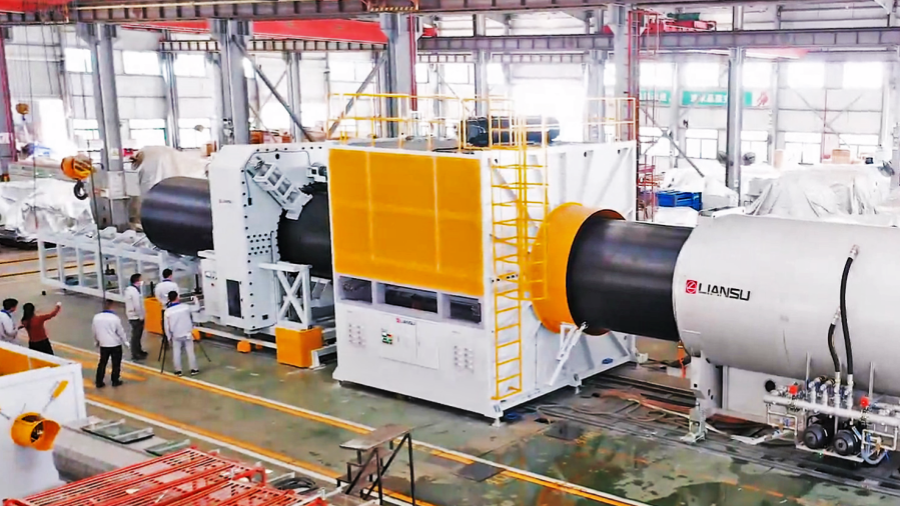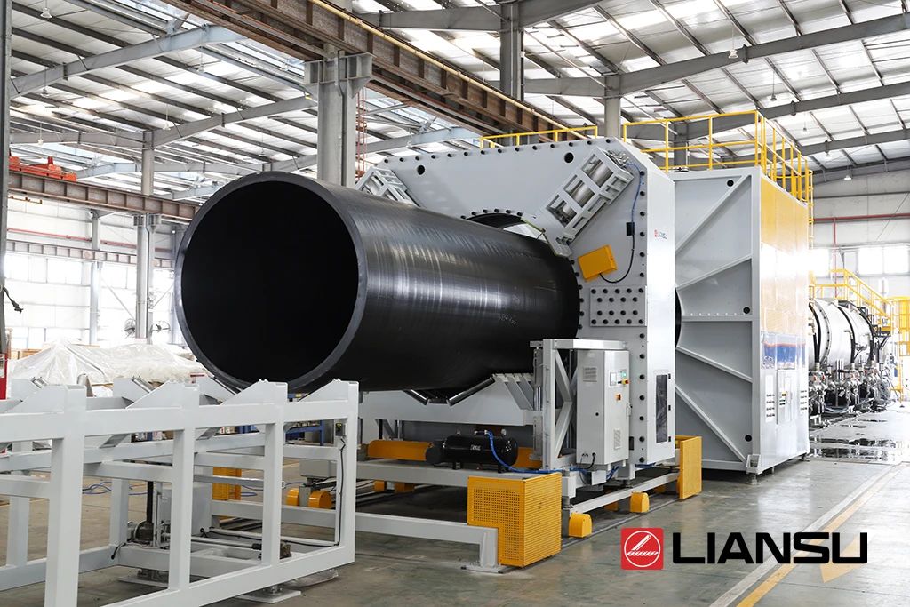 近日聯塑機器順利交付長達70多米的實壁管擠出生產線,這是聯塑機器在拉美地區銷售的第一條2米HDPE實壁管擠出線。眼前這條可擠出2米直徑HDPE實壁管的生產線,是聯塑機器的得意之作。目前鮮少塑機企業能夠實現特大口徑HDPE管材生產裝備制造。